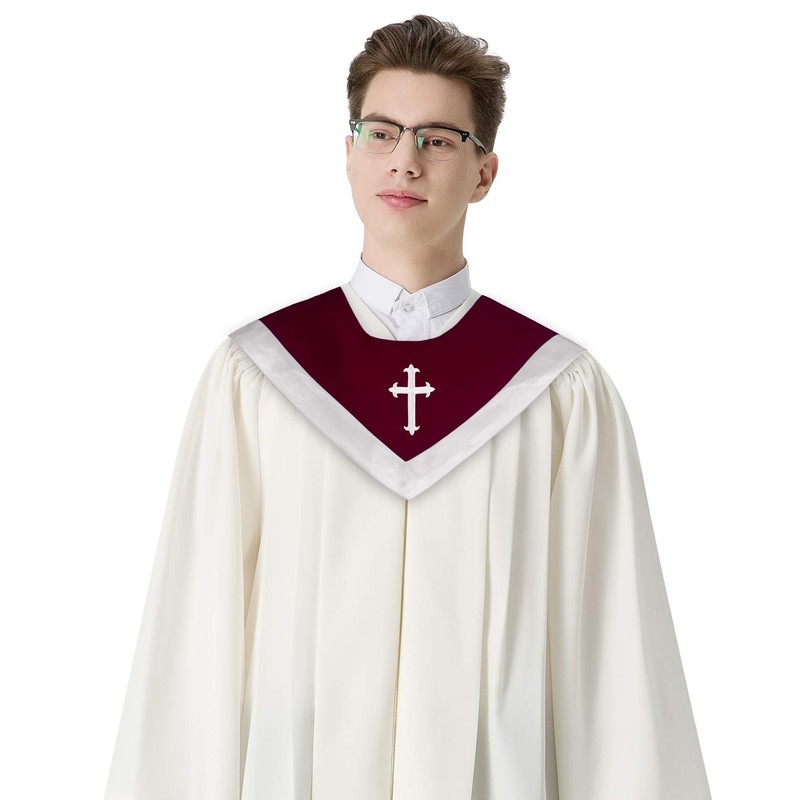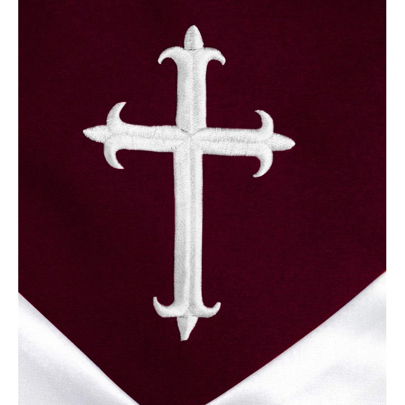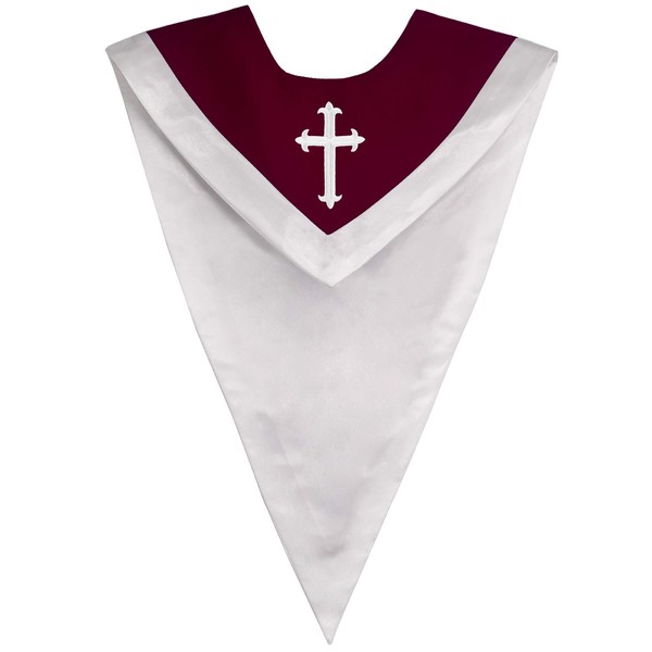 IvyRobes Unisex Reversible V Shape Choir Stole with Border and Cross, Maroonwhite, One Size