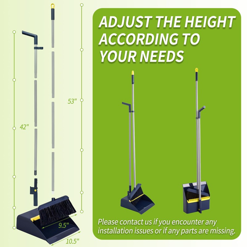 - COMFORTABLE, ERGONOMIC DESIGN: With a 53"-long handle, our broom with dustpan combo set is ideal for most users, allowing you to clean comfortably without bending over. The long handle provides ease and efficiency, reducing strain on your back