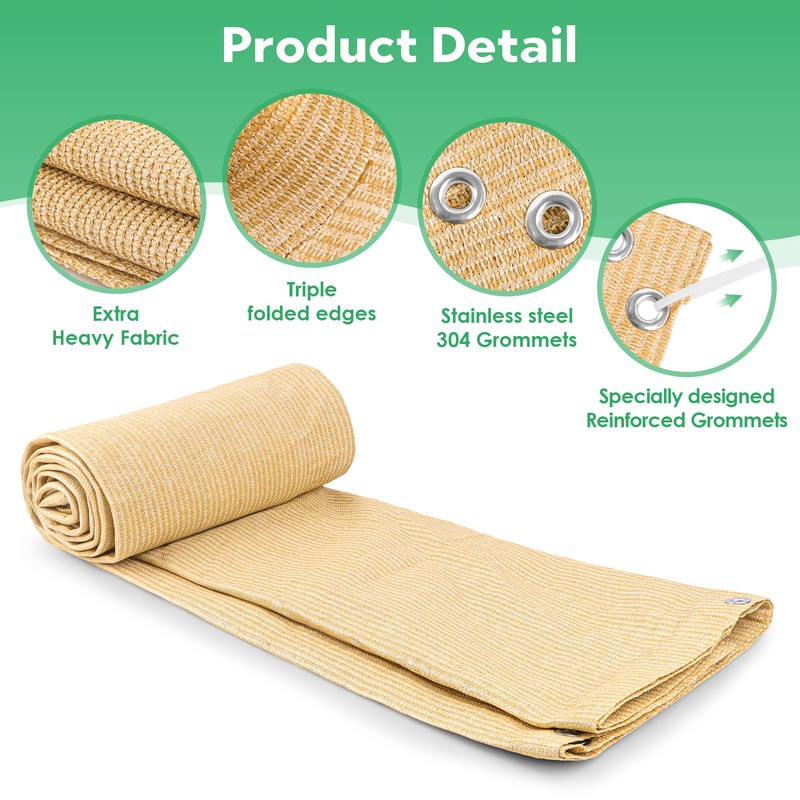 - Easy to Install: Shade Fabric has grommets every 1.5 ft and is very easy to hang. The package includes 35 pcs extended zip ties. The sun shade cloth is also easy to remove, and can be folded up for easy storage when not in use