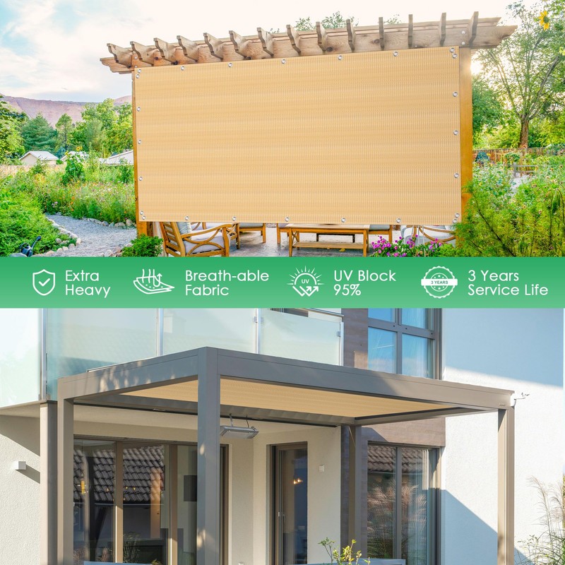 - Shade and Cooling: Provides up to 95 harmful UV ray blockage, shade, privacy and wind reduction. Allows fresh air passage and doesn't catch water, reducing temperatures underneath by up to 20 30 degrees Fahrenheit