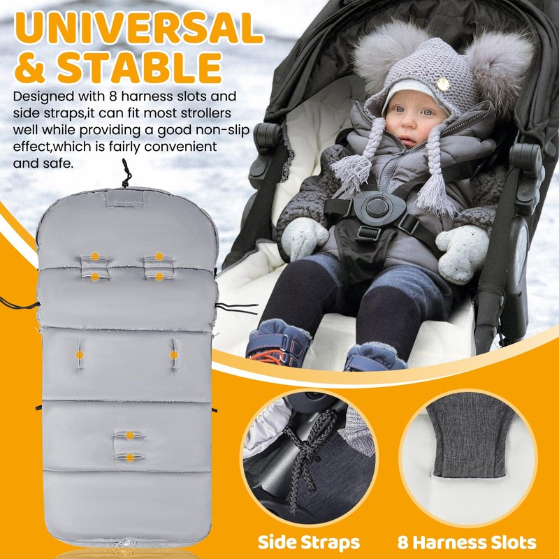 - π πππππππππ ππππππ: You can flexibly control your baby's temperature by adjusting the zip according to specific weather conditions. And without removing your baby from the pushchair footmuff, you can quickly complete baby care tasks such as changing nappies and shoes. In addition, without removing the Ivywind Footmuff for Stroller, you can fold the pram up easily.