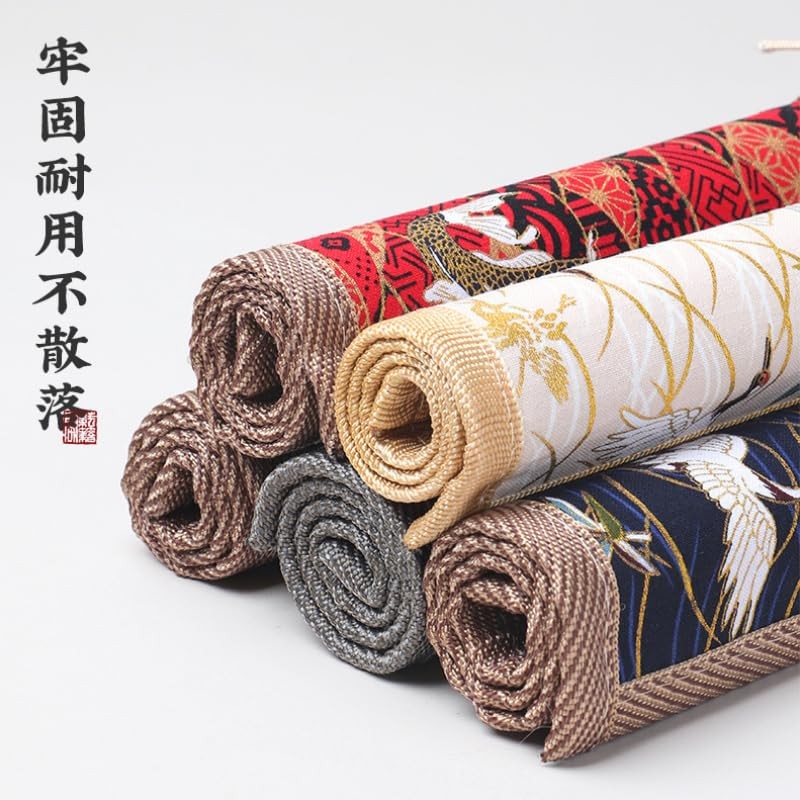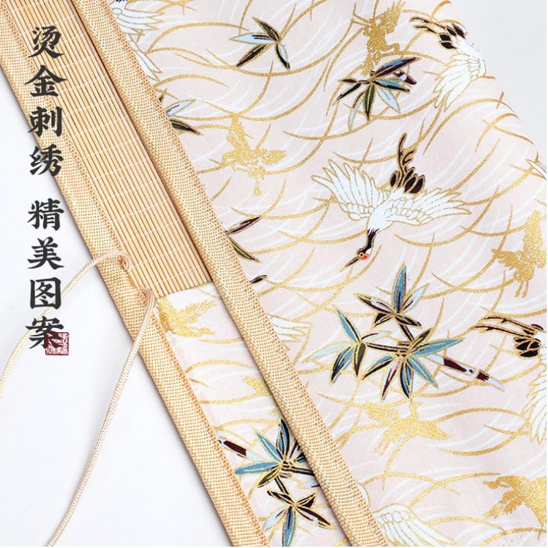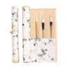 IWAMiYA Calligraphy Tool Calligraphy Brush Scrolls Bamboo Floral Print Pocket Brush Storage Storage Carrying (White)