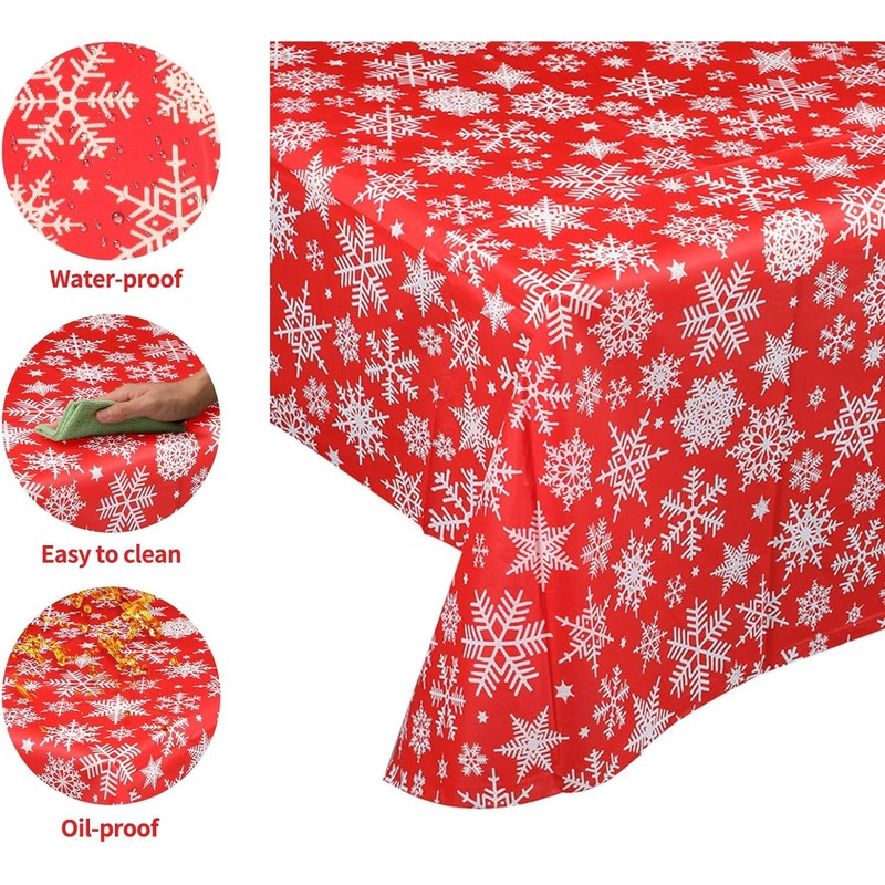 Christmas Tablecloth, 54 x 108"Christmas Table Cloth Rectangular Red Snowflake Decorated Plastic Table Cover Waterproof Disposable Plastic Tablecloth for Christmas Table Decoration