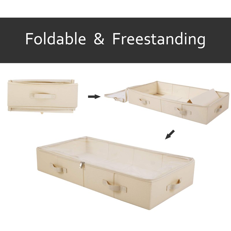 iwill CREATE PRO Pack of 2, Spacious Visible PVC Lid Underbed Storage Bins for Shoes, Blankets, Sheets organized, Foldable & Washable, Beige
