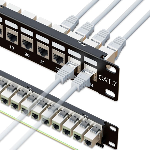 - Toolless Termination - 24 Port Cat7 pass through Patch Panel came with couplers making it easier to connect the cables without any punching down. Simply plug the Cat7 cable into the 24 RJ45 coupler jacks on either side of the Ethernet panel.