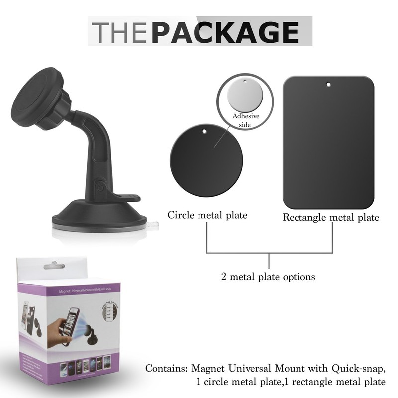 - Very easy installation! Just attached the mount to the windshield or to the dashboard, put the magnet between your phone and your phone case.
