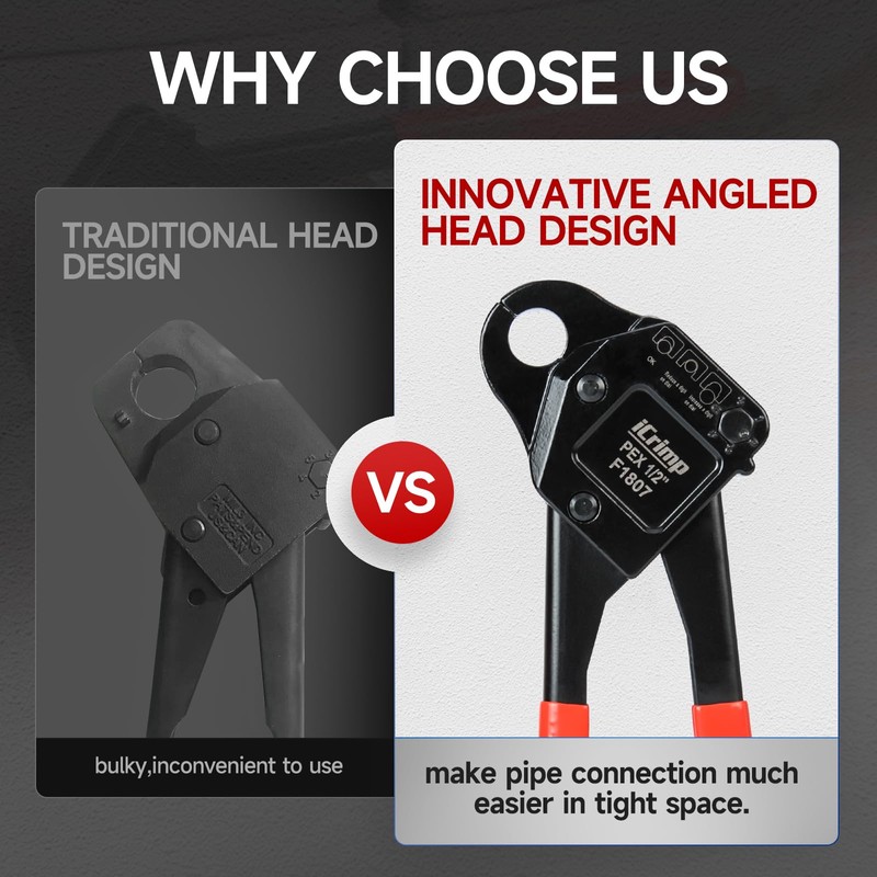 iCrimp Angle Head F1807 PEX Pipe Crimping Tool for Copper Rings - 1/2&3/4-inch Two Crimper Set with Cutter, Suitable for Tight Spaces