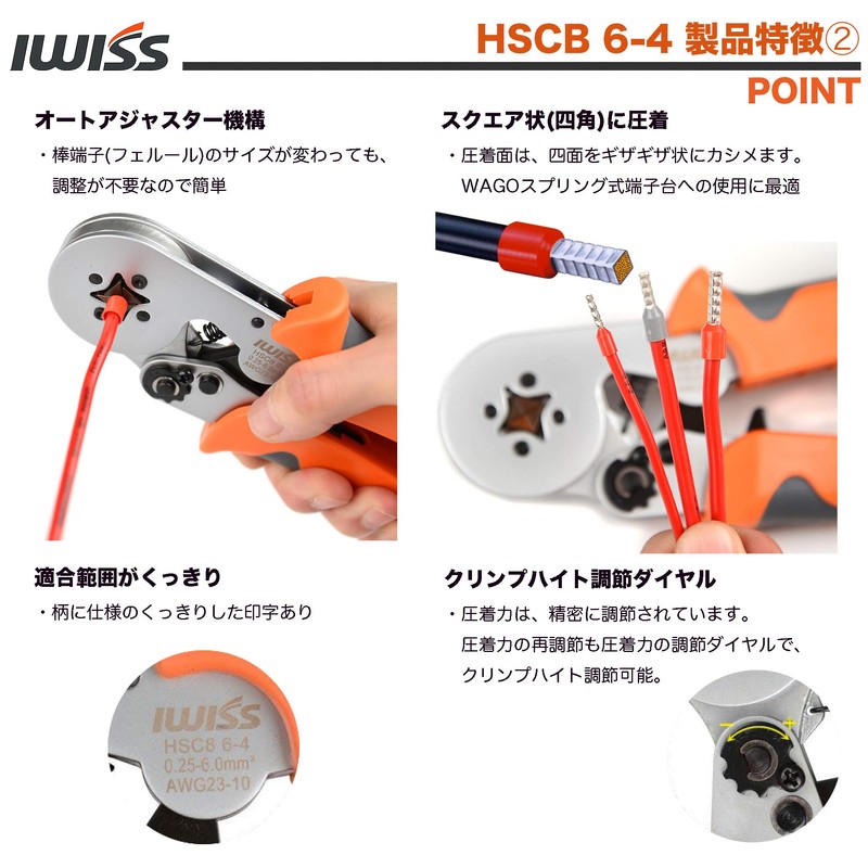 IWISS Ferrule Crimping Pliers, EDM Processing Dice, Wire End Sleeve, For Rod Terminals, 0.25-6.0 mm2, HSC8 6-4