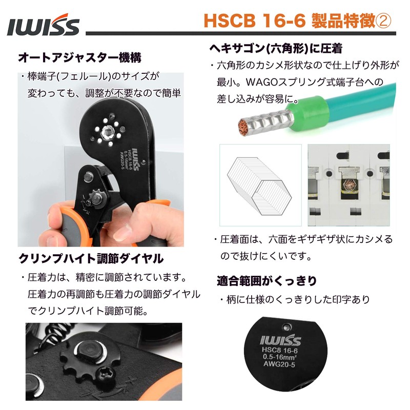 IWISS HSC8 16-6 Ferrule Crimping Pliers for Wire End Sleeves for Rod Terminals 0.5-14.0 mm2