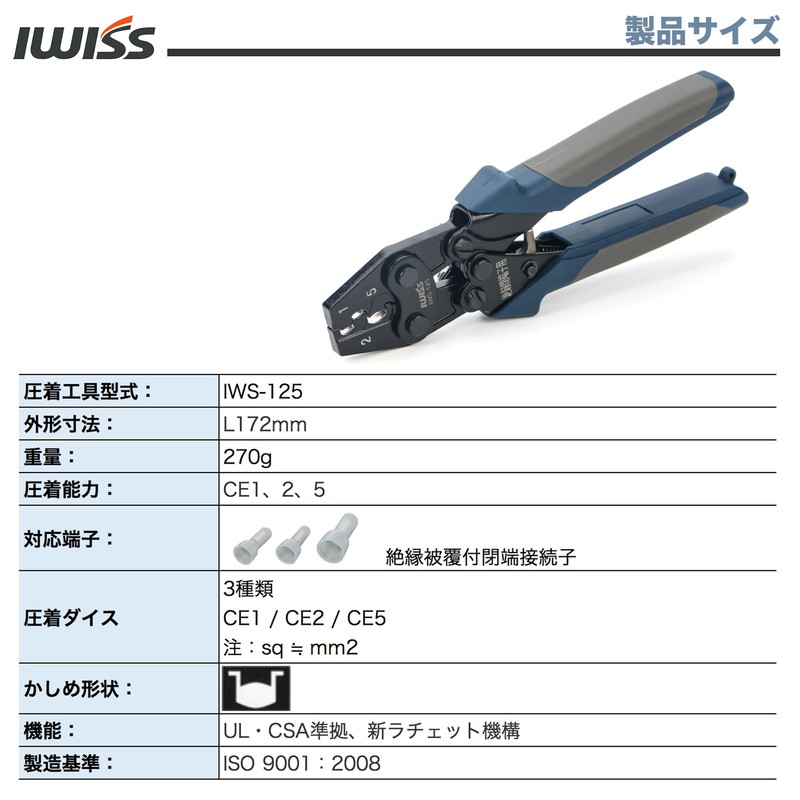 IWISS IWS-125 Crimping Tool with Insulated Sheath Crimping Tool JIS Compliant for CE-1 / CE-2 / CE-5