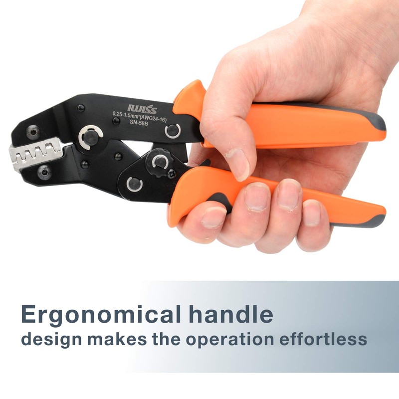 IWISS SN-58B Ratchet Crimper 0.25-1.5mm² AWG24-16 for Dupont,TE,JST,Molex Terminal