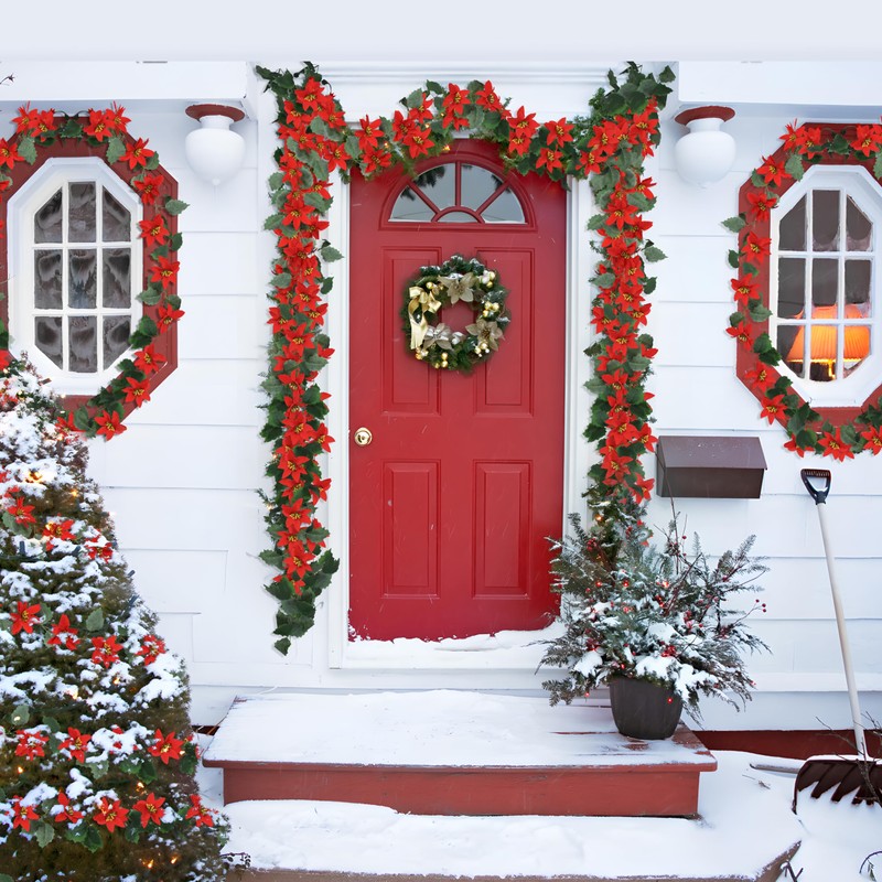 - Realistic Christmas Garlands: Our petals flowers and holly leaves and red berries are crafted, brightly colored to look like real flowers and leaves. Perfect for Christmas party decoration.