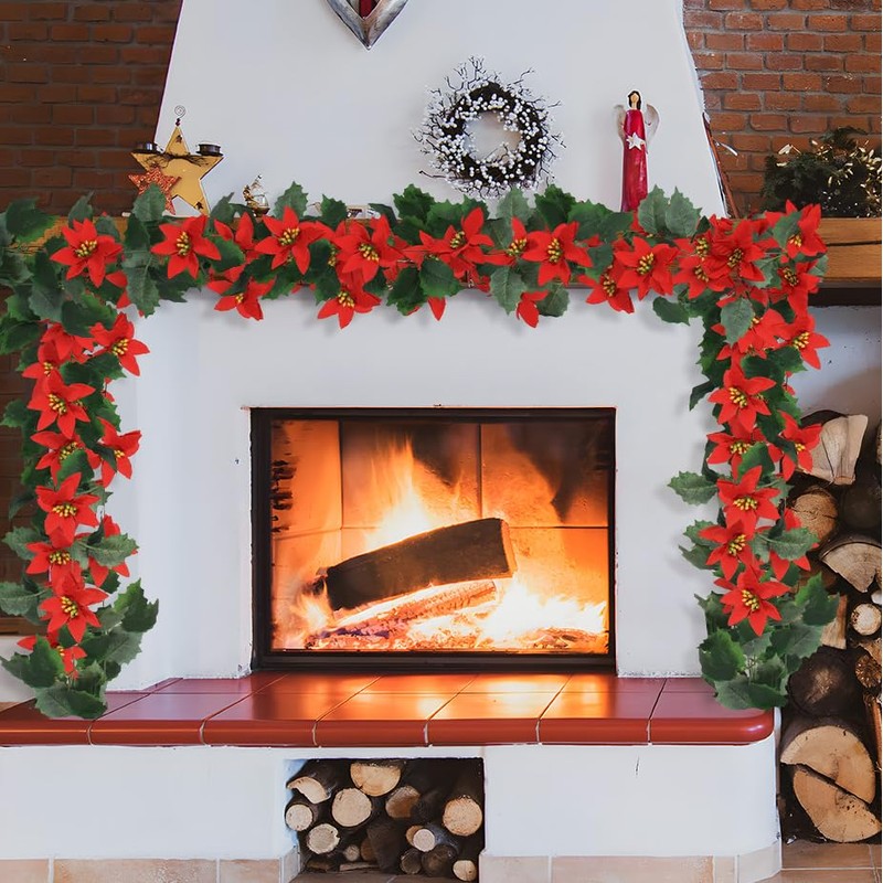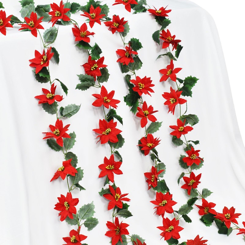 - Premium Materials: Red flower and holly leaves are made of silk cloth, branch made of high-quality plastic, and the garland stems are flexible that can be bent freely to suit the decor of any space.