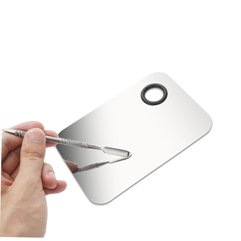 Stainless Steel Palette for , students, artists, beginners, etc.Makeup Palette You can also use it with any painting media to help your job.Beauty Salon Palette Made of material, durable and use.Paint Palette Beauty makeup and nail art paint drawing tray, with an aided bar and storage case, is convenient for you to carry