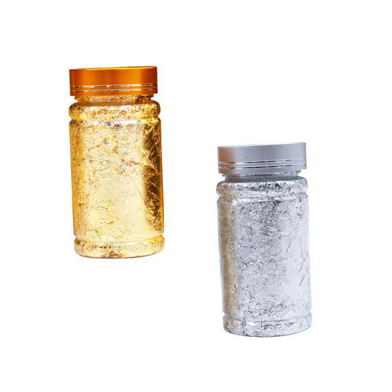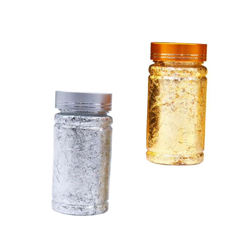 - Easy to create your grandeur unique style, also nail art decoration Metallic Flakes gold leaf flakes gold flakes Silver flakes Silver leaf flakes silver paper gold flakes Silver flakes gold flake sheets flakes gold leaf for cakes Silver leaf for cakes metallic leaf flakes food.