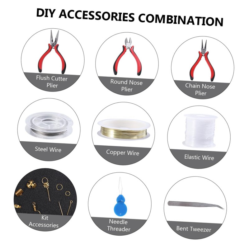 - Jewelry making kit include: Pliers tweezers needle ring buckles.