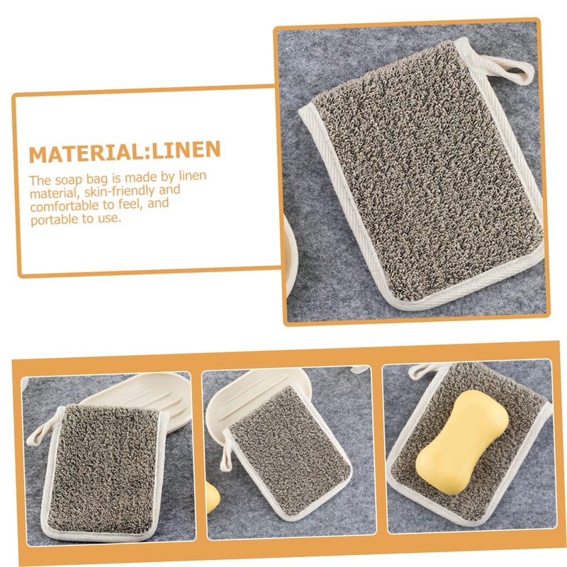 shower bag The soap exfoliating bag works exfoliation, and great for storage soap.soap holder This soap sleeve is made of linen material for and use.soap storage bag The mesh pouch can keep the soap clean, great for handmade soap, facial soap, cosmetic soap, and so on