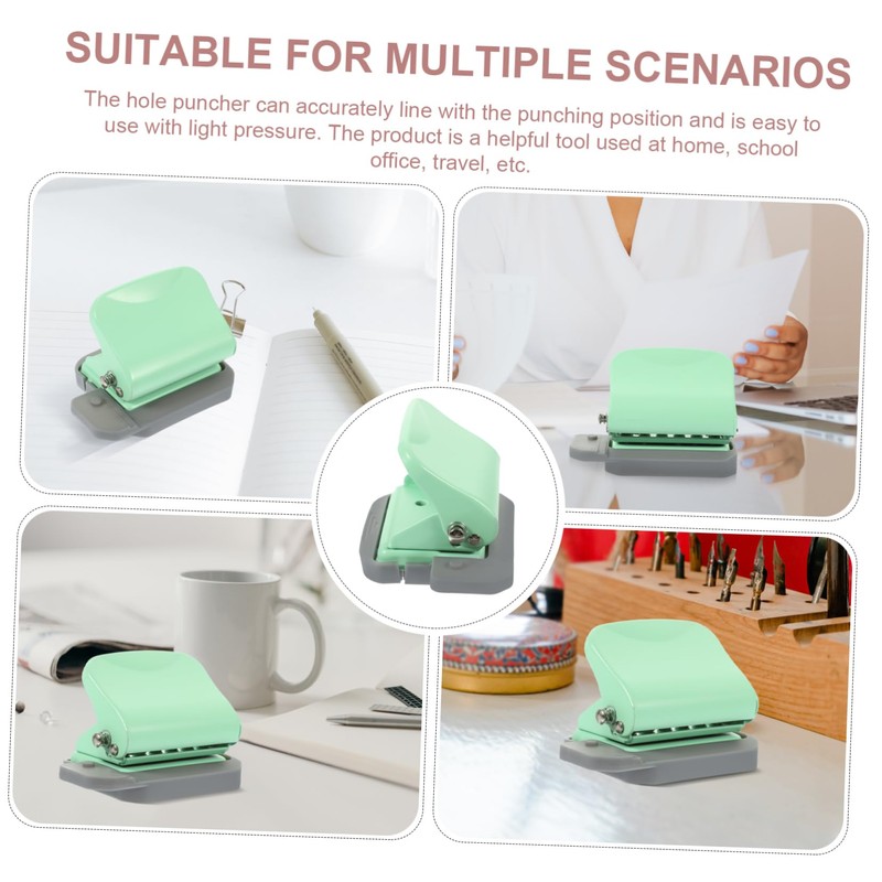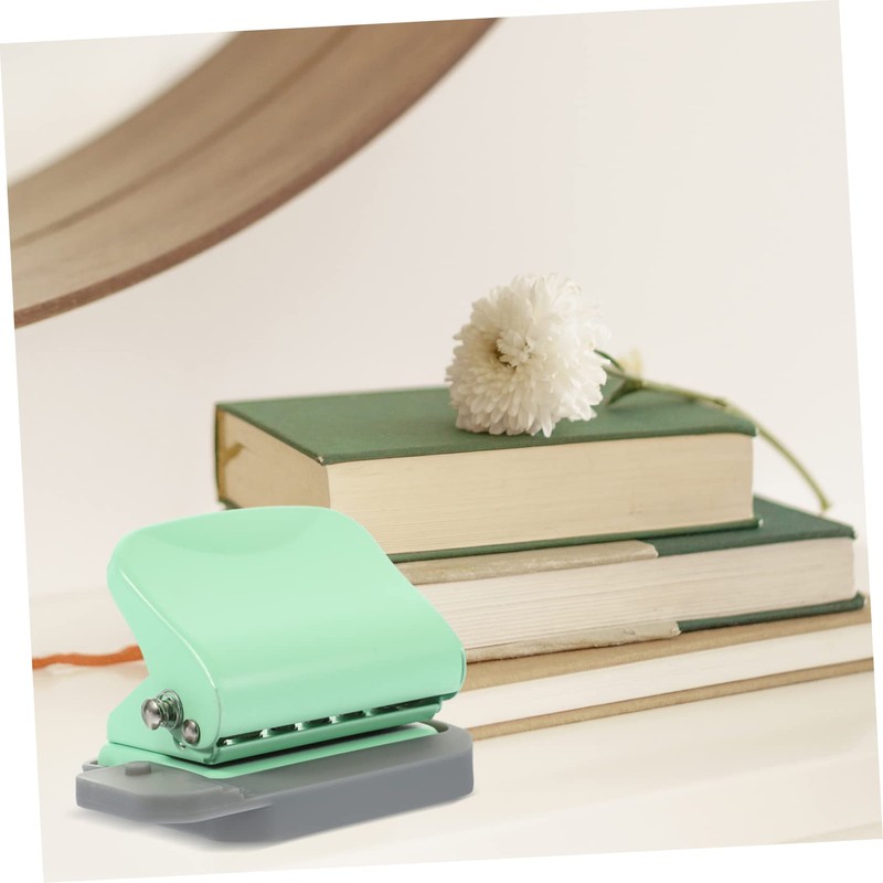 IWOWHERO Loose Leaf Puncher Manual Maker Compact Office Supply for Paper Chipboard Crafting Durable Construction Adjustable Round Mint Green