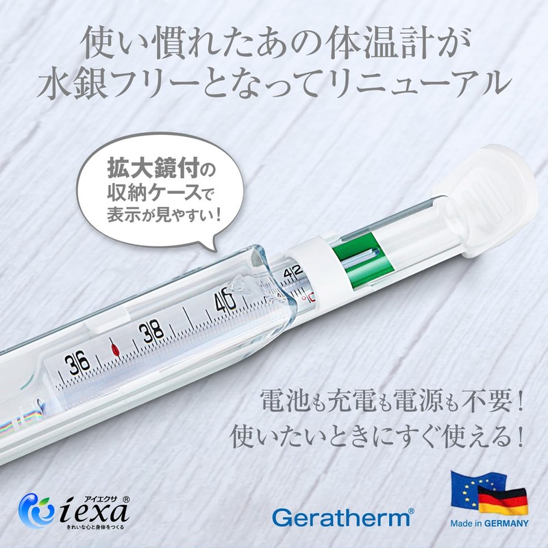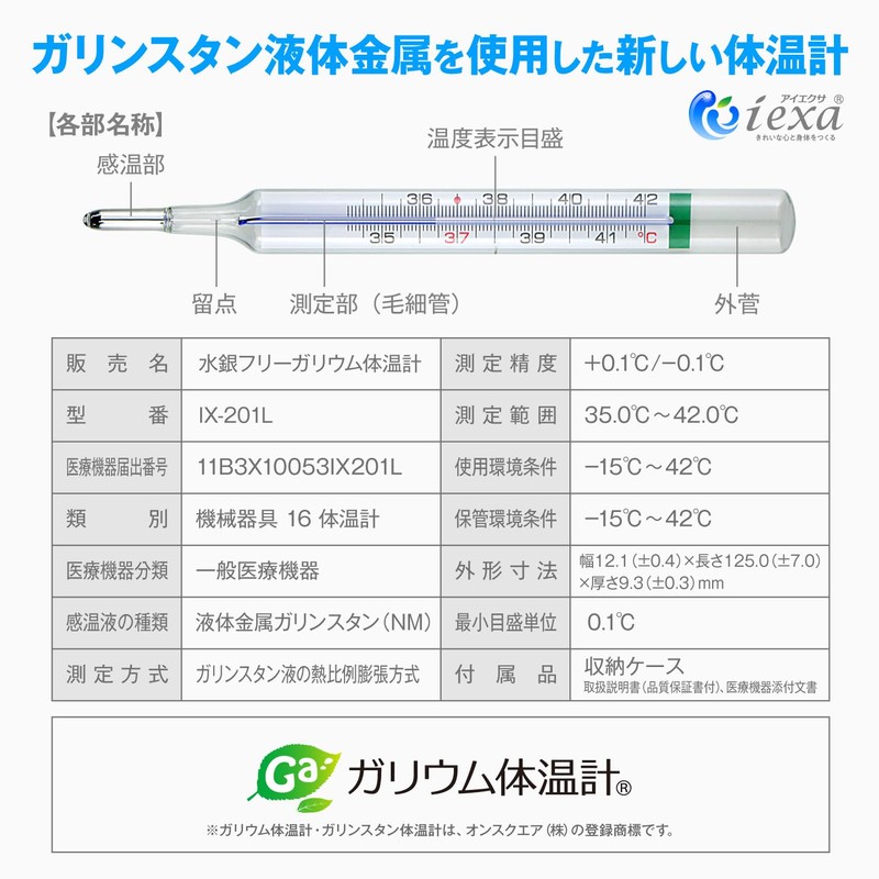 アナログ体温計 水銀フリー 体温計 液体金属ガリンスタン使用 電池不要 実測式 IX-201L iexa(アイエクサ)