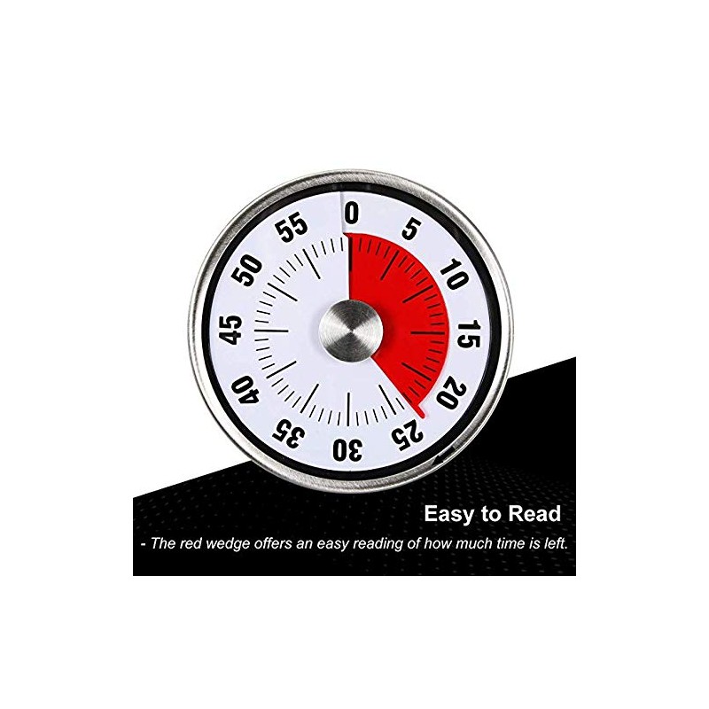 - 60db Mechanical LOUD ALARM, No Batteries Required - The Mechanical timer has an inbuilt 60db alarm, it doesn’t need any batteries which makes it energy efficient and environmentally friendly. The alarm is quite loader; can be easily heard within a radius of about 10m under low noise conditions which means that you'll never miss it even if you're in another room.