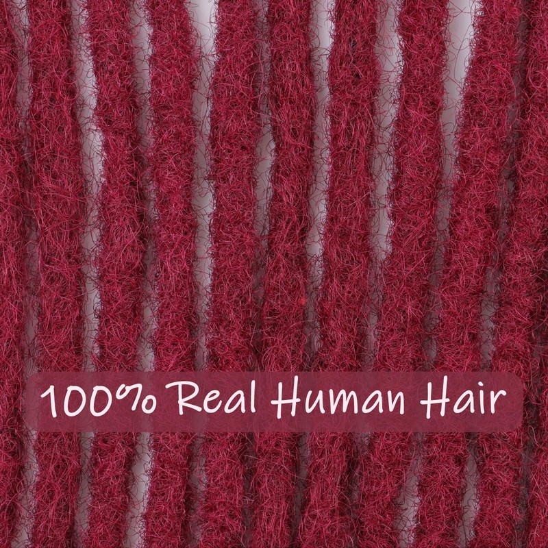 IXIMII #Bug Dreadlock Extensions Human Hair 0.4cm 8 inch 20 Strands Burgundy Handmade Permanent locs with Needles and Comb Real Human Hair Dreads Extensions for Women Men Kids