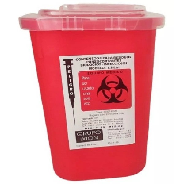 LO QUE OBTIENES: 1 Contenedor para residuos Punzocortantes Biológico-Infecciosos. 1.8 Lt