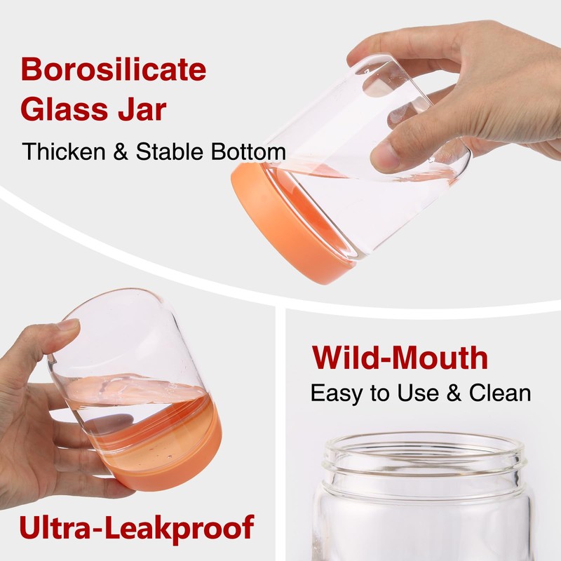 - Airtight Lids for Freshness: Leak-proof seals keep ingredients fresh in these versatile snack containers. Ideal as salad meal prep containers, baby food storage jars, or microwave-safe lunch jars (remove lids before heating). Features 3-inch wide-mouth design that fits blenders and ice cream scoops for easy filling and serving. Great for storing coffee beans, spices, and grab-and-go overnight oats.