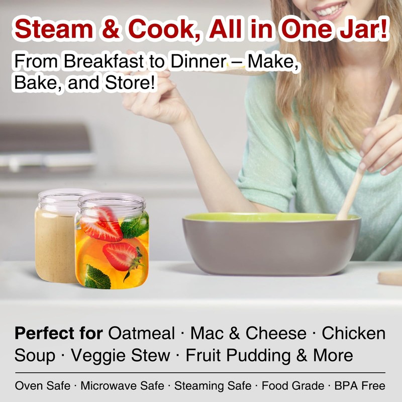 - Effortless Cleaning & Meal Prep: Wide-mouth jars make filling and cleaning a breeze. Microwave leftovers, prep chia pudding, or blend smoothies—then toss them in the dishwasher for quick cleanup. Perfect for yogurt, baby food, or salad jars