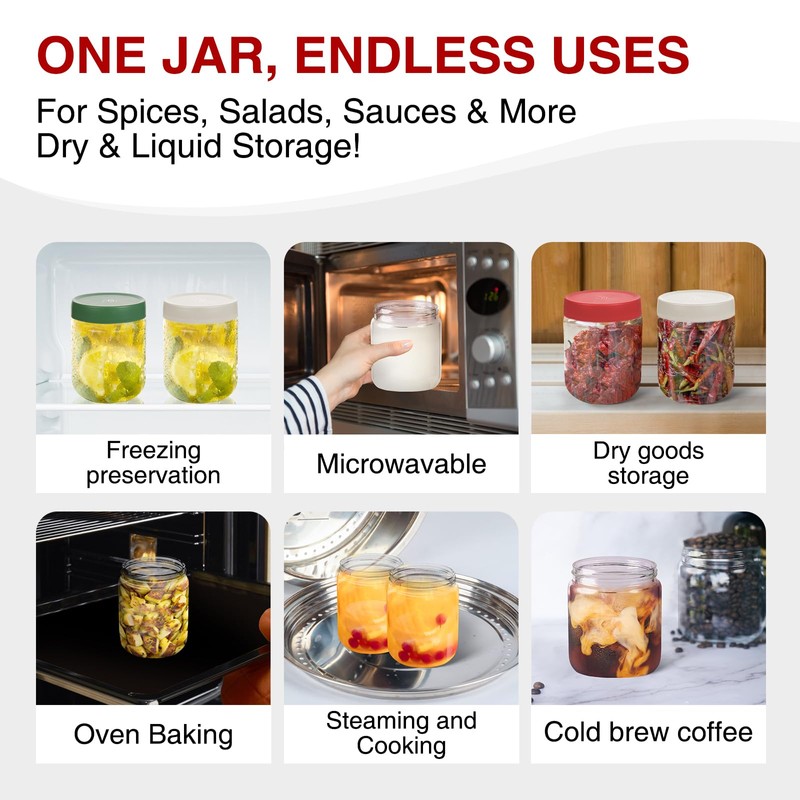 - Effortless Cleaning & Meal Prep: Wide-mouth jars make filling and cleaning a breeze. Microwave leftovers, prep chia pudding, or blend smoothies—then toss them in the dishwasher for quick cleanup. Perfect for yogurt, baby food, or salad jars