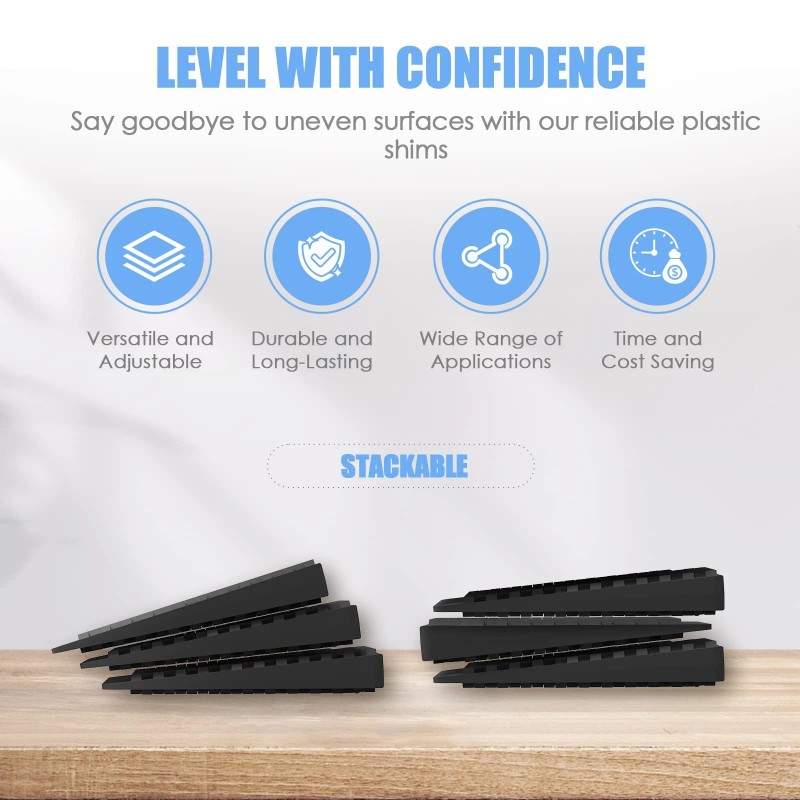 Superior Performance: Our plastic shims are designed to withstand heavy loads and pressure. With their non-slip surface, our furniture levelers provide stability and prevent accidents caused by shifting or uneven surfaces. You can trust in their reliability and create safer environments.