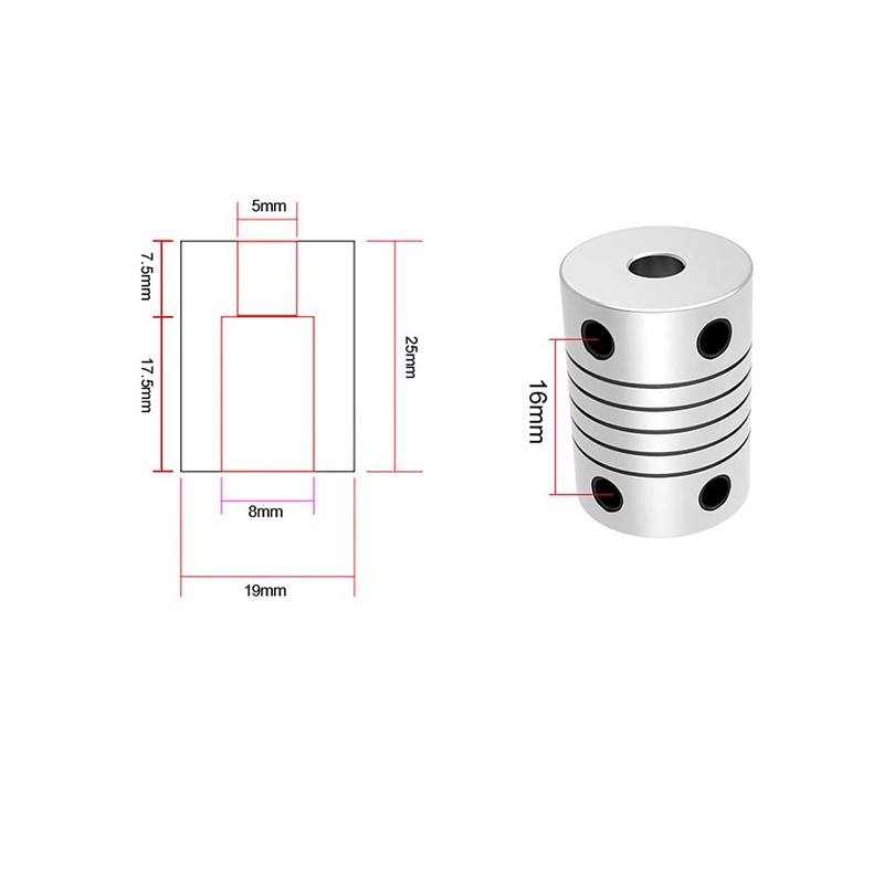 - Size: Length = 25mm, Outer diameter = 19mm, Connection Diameter: 5mm to 8mm
