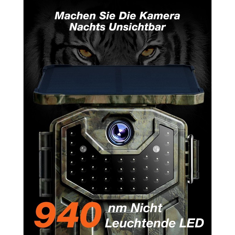- Innovative solar-powered technology and dual power supply: this wildlife camera has a built-in 5200 mAh lithium battery with high capacity, which can also be operated by the above-mounted solar panel. It significantly reduces battery consumption and saves your money. In addition, thanks to the battery pack and the backup power source, you don't have to worry about a dead battery. (SD card not included. This wildlife camera has no WiFi function).