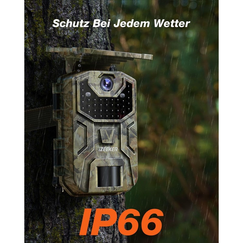 iZEEKER Solar Wildlife Camera, 2.7K/1520P 30fps 36MP Wildlife Camera with 940nm No Glow Infrared LEDs, Wildlife Camera with Motion Sensor Night Vision, IP66 Waterproof for Wildlife Watching & Home