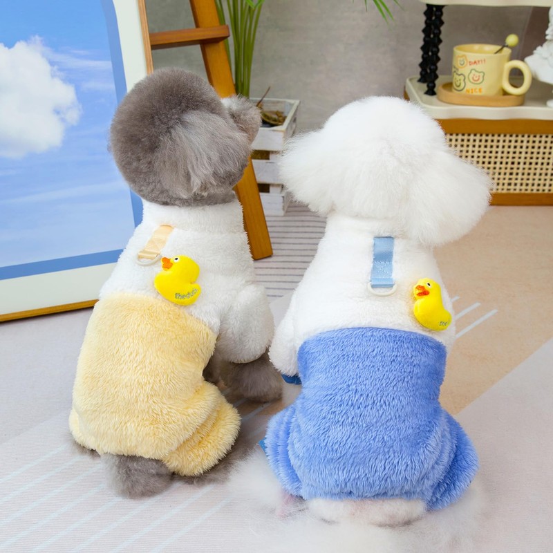 Izefia Dog Jumper Dog Clothes Fleece Dog Wool Jumper Winter Warm Sweatshirt 4 Legs Jumpsuit Pyjamas Cute Yellow Duck Dog Jumper for Small Dog Medium Dog Cat