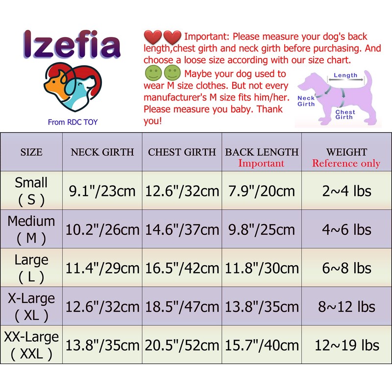 ★ Various choice of sizes, suitable for small dog puppy, not for large dog. Please don't choose size according to a usual size, but to measure your pet's neck girth, chest girth and back length (especially the back length) and choose a loose size according to our size chart. If your pet is growing, please choose a larger size.