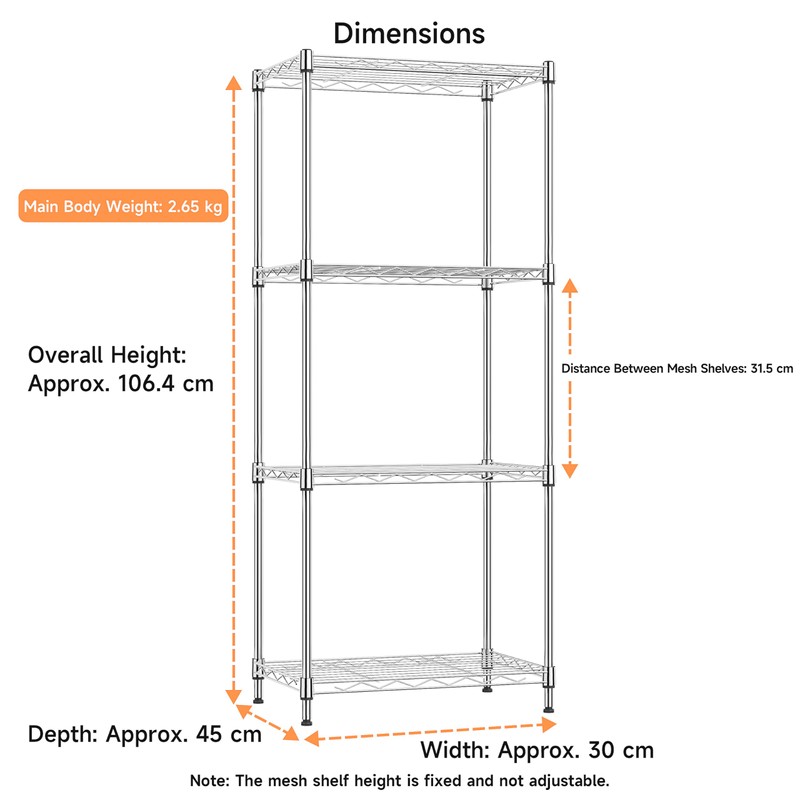 - Strong & Durable: Built with high-quality carbon steel, this 4-tier wire shelving unit offers reliable strength and long-term durability. Perfect for organizing kitchen supplies, office essentials, or household tools.