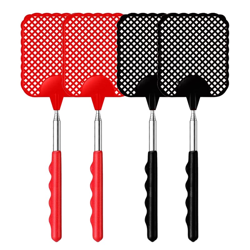iZhuoKe Pack of 4 fly swatters, extendable fly swatters, repels flies, wasps and other insects (black, red)