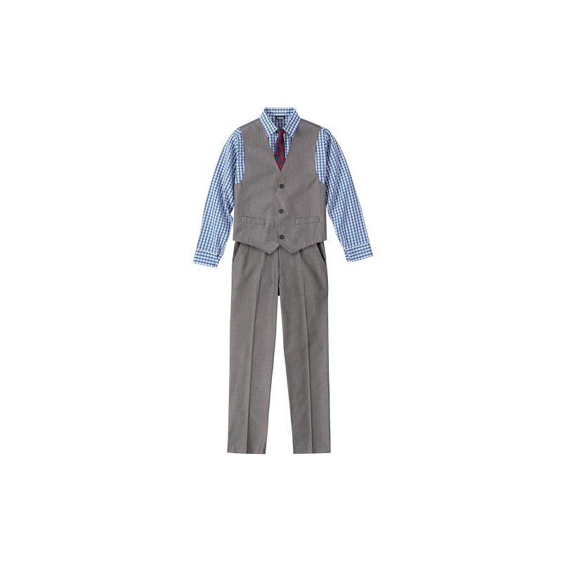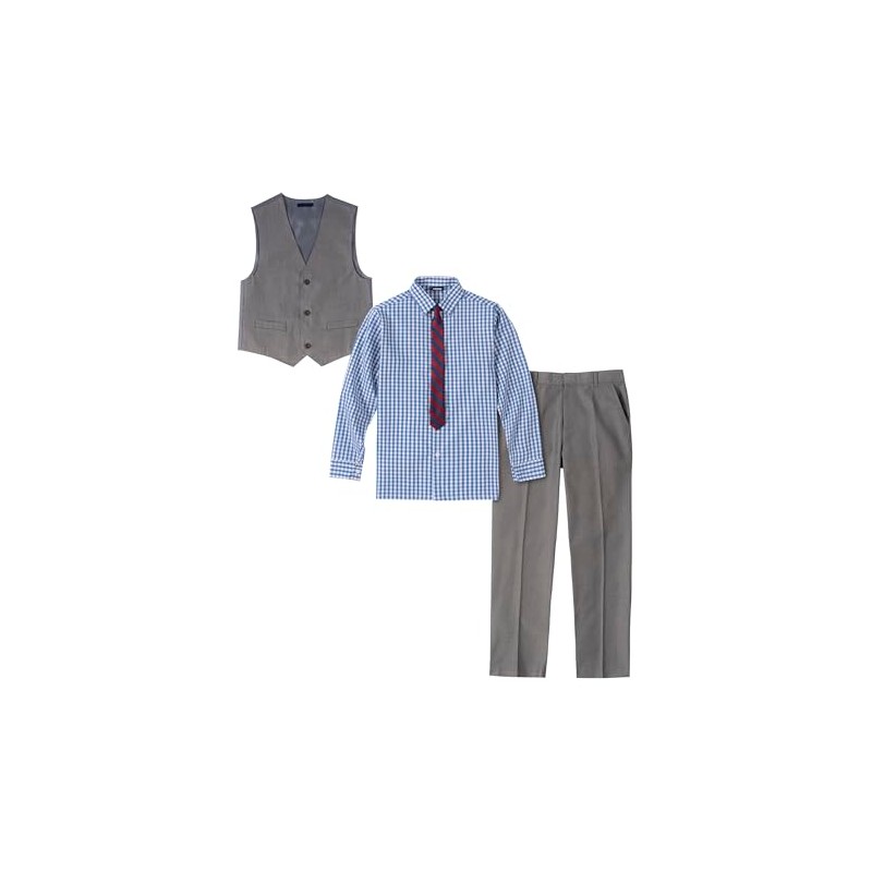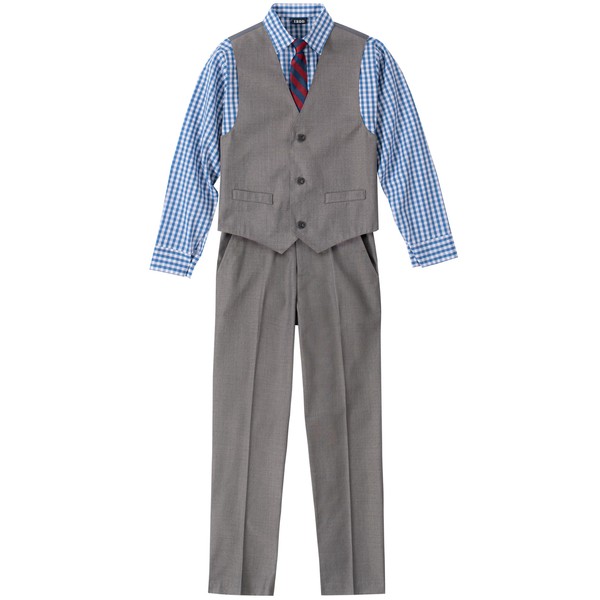 Izod Little Boys 4-Piece Formal Suit Vest Set, Medium Blue/Grey, 4