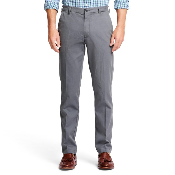 IZOD Men's Performance Stretch Straight Fit Flat Front Chino Pant, Smoked Pearl, 32W x 29L