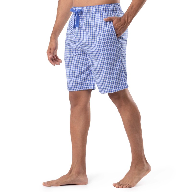 IZOD Men's Poly Rayon Drawstring Sleep Lounge Short, Blue/White Plaid, Large