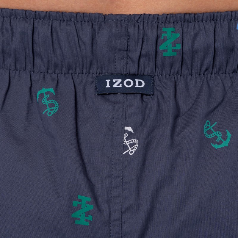 IZOD Men's Printed Poplin Relaxed Fit Drawstring Sleep Shorts, Dark Navy/Anch...