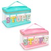 izuzta - Bolsas de maquillaje transparentes con letras de chenilla, bolsa de maquillaje con asa, STUFF-Pink & STUFF-Green