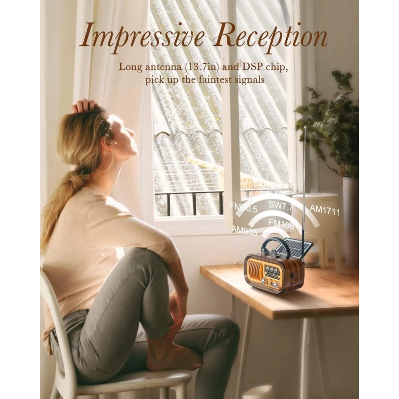 J-150 Bluetooth Radio: Lightweight Portable with Solar Power & USB Rechargeable