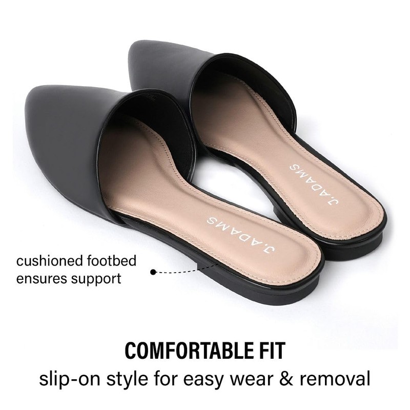 J. Adams Lennox Mules for Women - Closed Pointed Toe Flat Heel Slides, Black Vegan Leather, 9.5