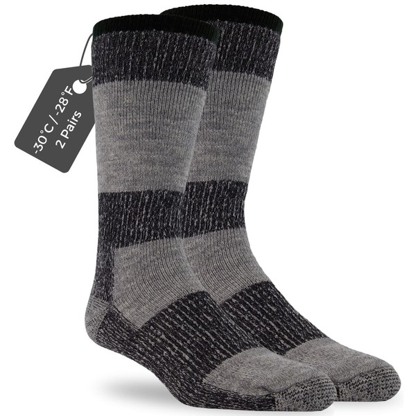 J.B. Field's Extreme -30 Below XLR Winter Sock (2 Pairs) (Mid Grey, Large (8-12 Shoe))