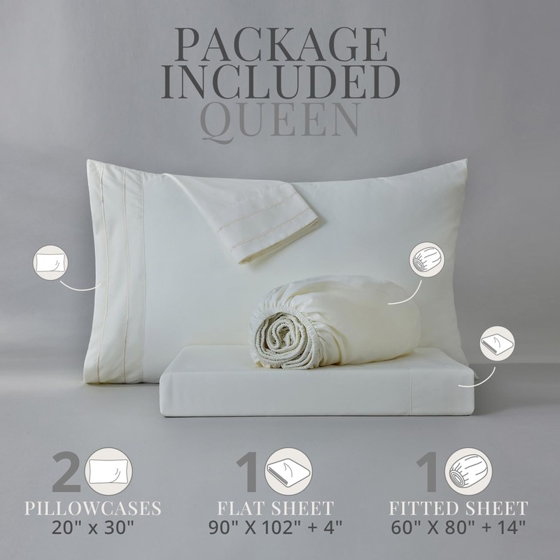 - What You Get: This Queen Sheet Set includes two pillowcases (20" x 30"), a flat sheet (90" x 102"+4''), and a fitted sheet (60" x 80"+14'').