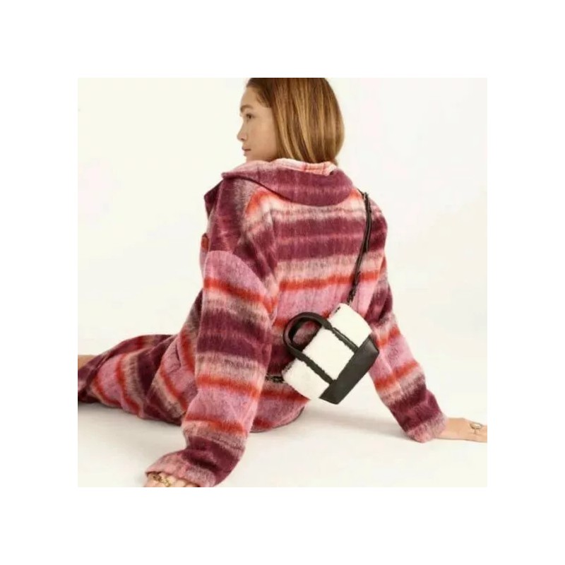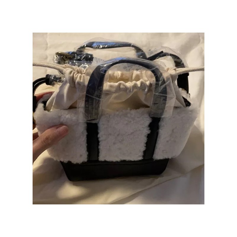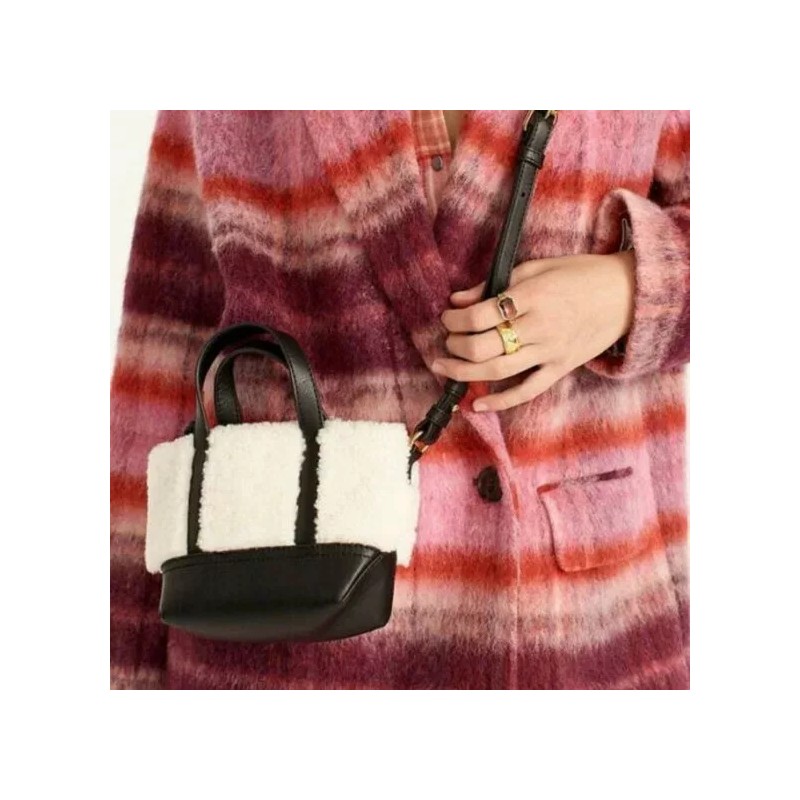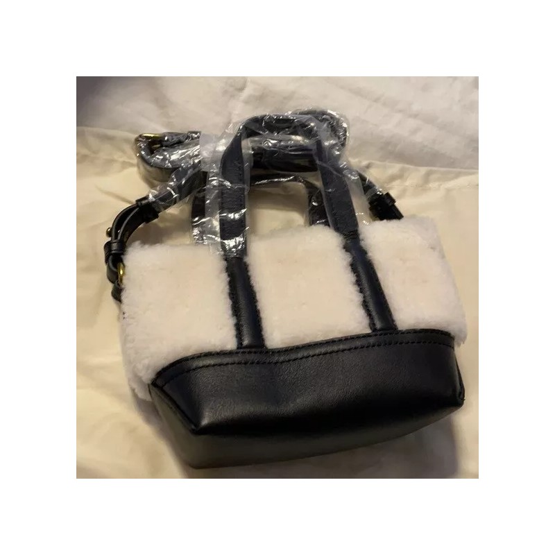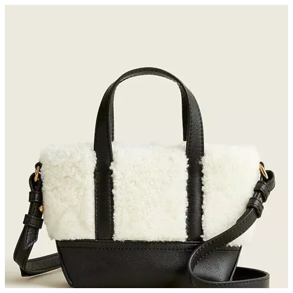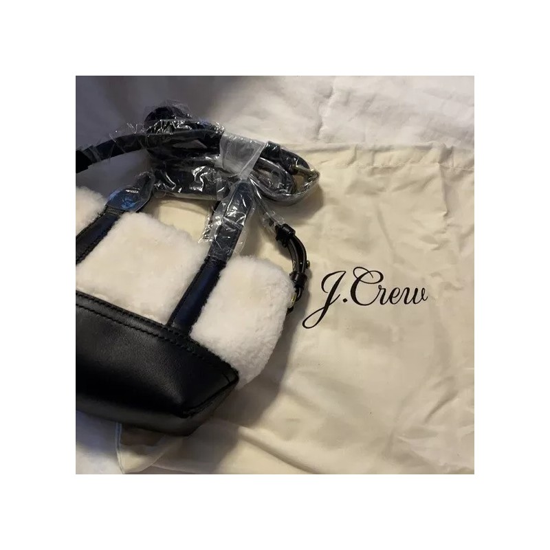 J.CREW J Crew Tote Bag Mini Montauk Sherpa Leather White Black NEW