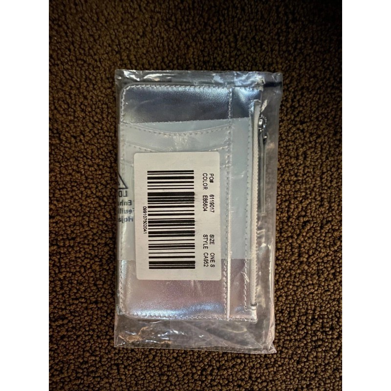 J.CREW NEW J Crew Credit Card Case Holder Silver Metallic Leather w/Zipper NWT