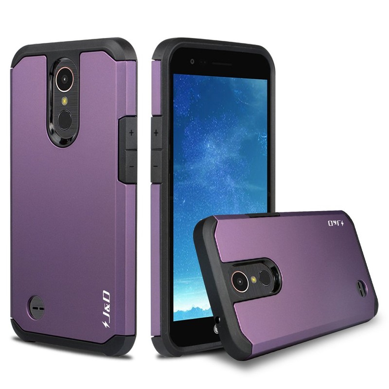 J&D Case Compatible for LG K20 V/LG K20 Plus/LG Harmony/LG K10 2017 / LG V5 / LG Grace Case, Heavy Duty Dual Layer Hybrid Shockproof Protective Rugged Bumper Case for LG K20 V Case Purple