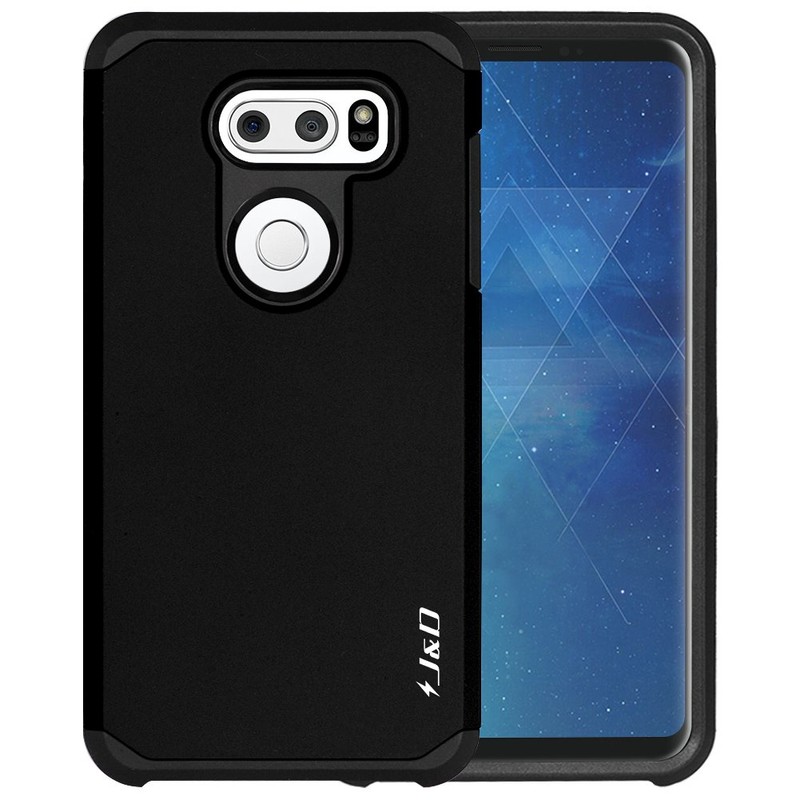 J&D Case Compatible for LG V35, LG V35 ThinQ/LG V30S/LG V30S ThinQ/LG V30/LG V30 Plus, Heavy Duty Dual Layer Hybrid Shock Proof Protective Rugged Bumper Case, Black